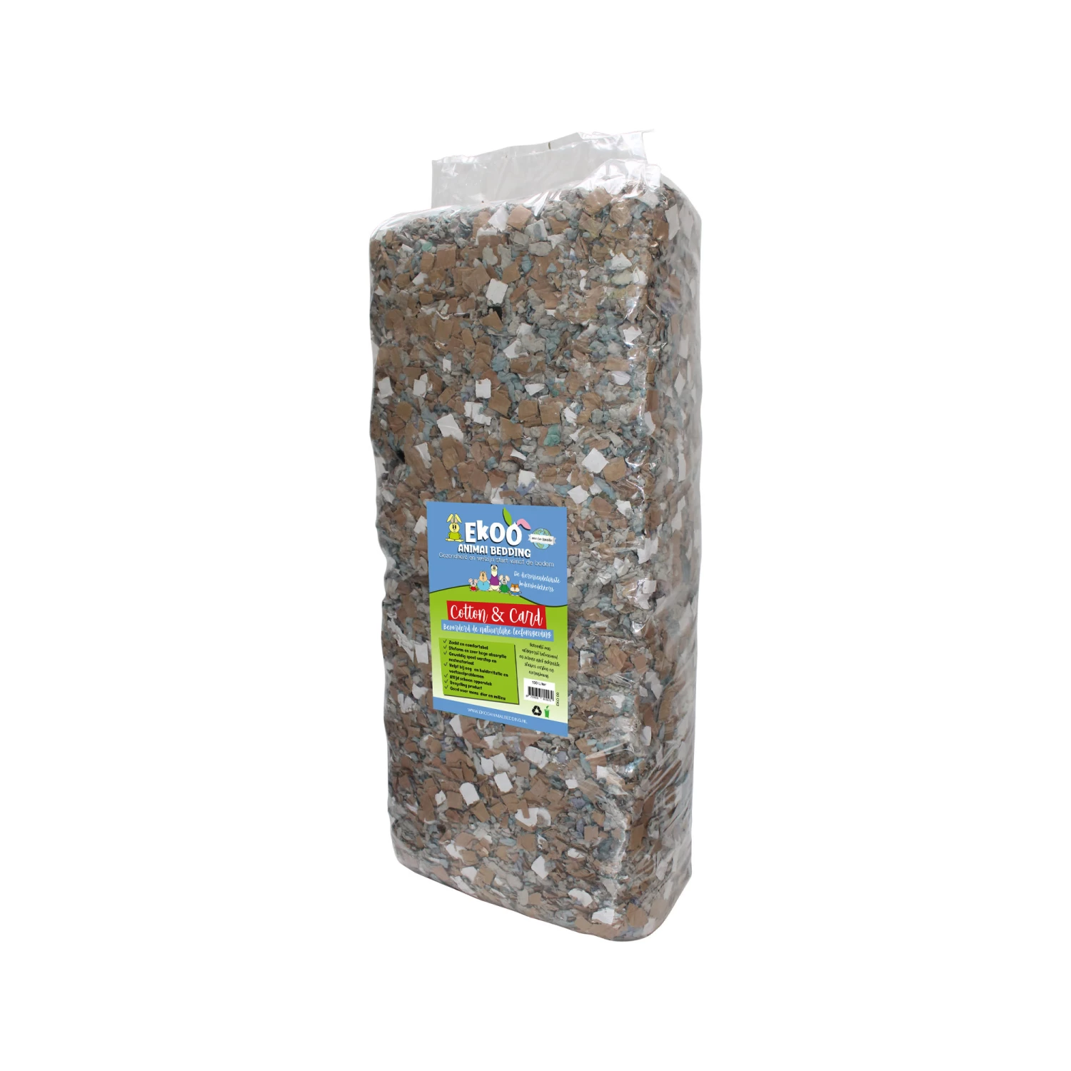 Cotton & Card van Ekoo Animal Bedding is geweldig speel, verstop en nestmateriaal voor kleindieren. Deze bodembedekker bevordert de natuurlijke leefomgeving van huisdieren. De bodembedekker is stofarm en heeft een zeer hoge absorptie. De bodembedekker bestaat uit uitgeperst katoenzaad, karton en stukjes eierdozen. Perfect om als speel-, verstop- en nestmateriaal te gebruiken. Door het zachte materiaal, helpt het bij oog- en huidirritatie of voetzoolproblemen. Het materiaal is gemaakt van gerecyclede producten.