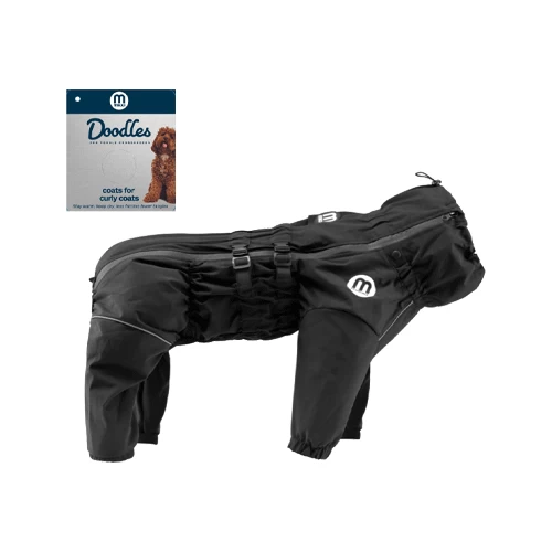 Deze Doodle jas van Mikki is de ideale jas voor honden met een krullende vacht. De zijden voering vermindert de vorming van klitten en knopen, waardoor de vacht van uw viervoeter in topconditie blijft. De jas is water- en winddicht, maar wel ademend. Doordat de jas volledig verstelbaar is rond de nek, taille en benen, is uw hond verzekerd van een perfecte pasvorm. De jas beschermt ook de poten van uw huisdier, maar er is natuurlijk wel rekening gehouden met ruimte voor een sanitaire stop.